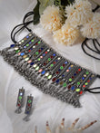 Multi Mirror Studded Tesseled Chokar Jewellery Set