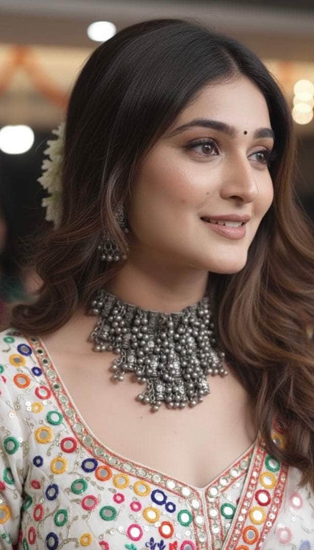 Navratri Special Oxidised Silver-Plated Multi Layer Chokar Jewellery Set