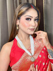 Add a touch of elegance to your look with this stunning handcrafted jewellery set. This set is perfect for any special occasion. The intricate detailing and timeless design make this a must-have accessory for your wardrobe.