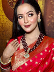 Nazakat Antique Gold-Plated Maroon & White Onyx AD Studded Handcrafted Jewellery Set