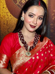 Add a touch of elegance to your look with this stunning handcrafted jewellery set. This set is perfect for any special occasion. The intricate detailing and timeless design make this a must-have accessory for your wardrobe.