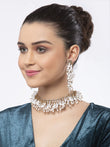 Off White Beads and Stones Studded Tasselled Afghan Design Handcrafted Choker Necklace and Drop Earrings