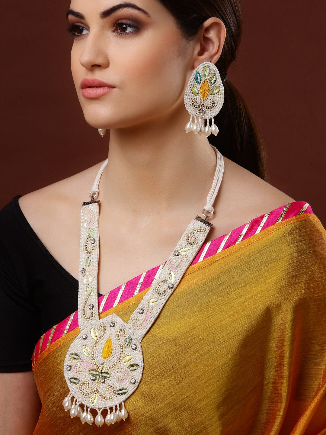 Off-White Crystals & Pearls Studded Embroidered Jewellery Set