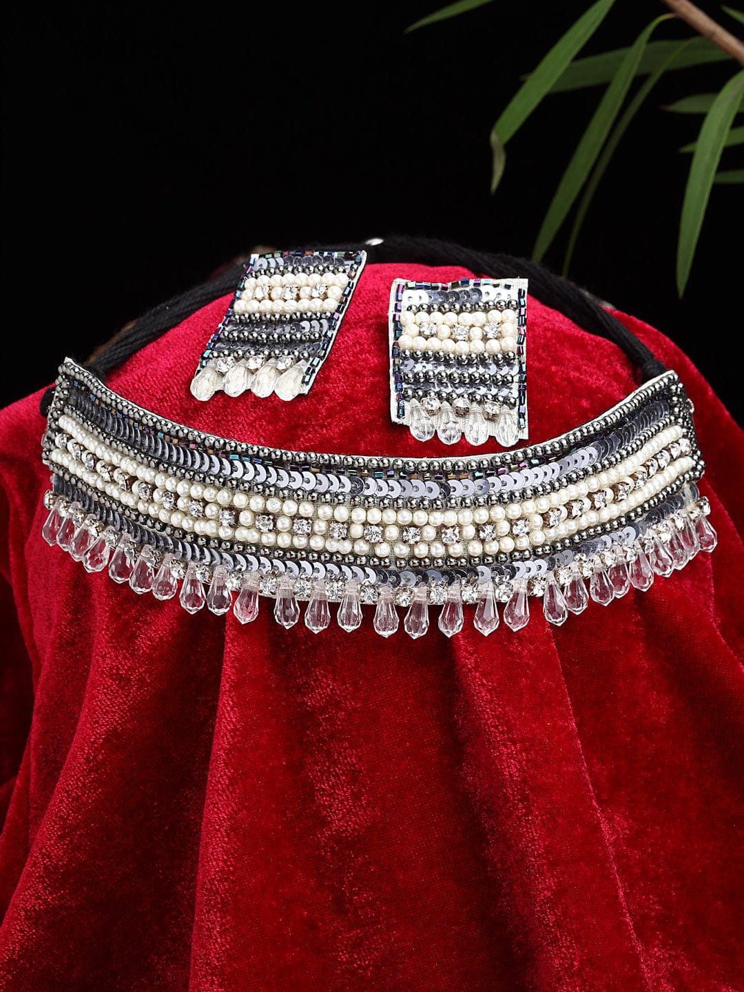 Off White Oxidised Brass Handcrafted Jewellery Set