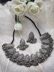 Silver-plated oxidised necklace, has ghungroo-studded and tribal tasselled design
