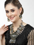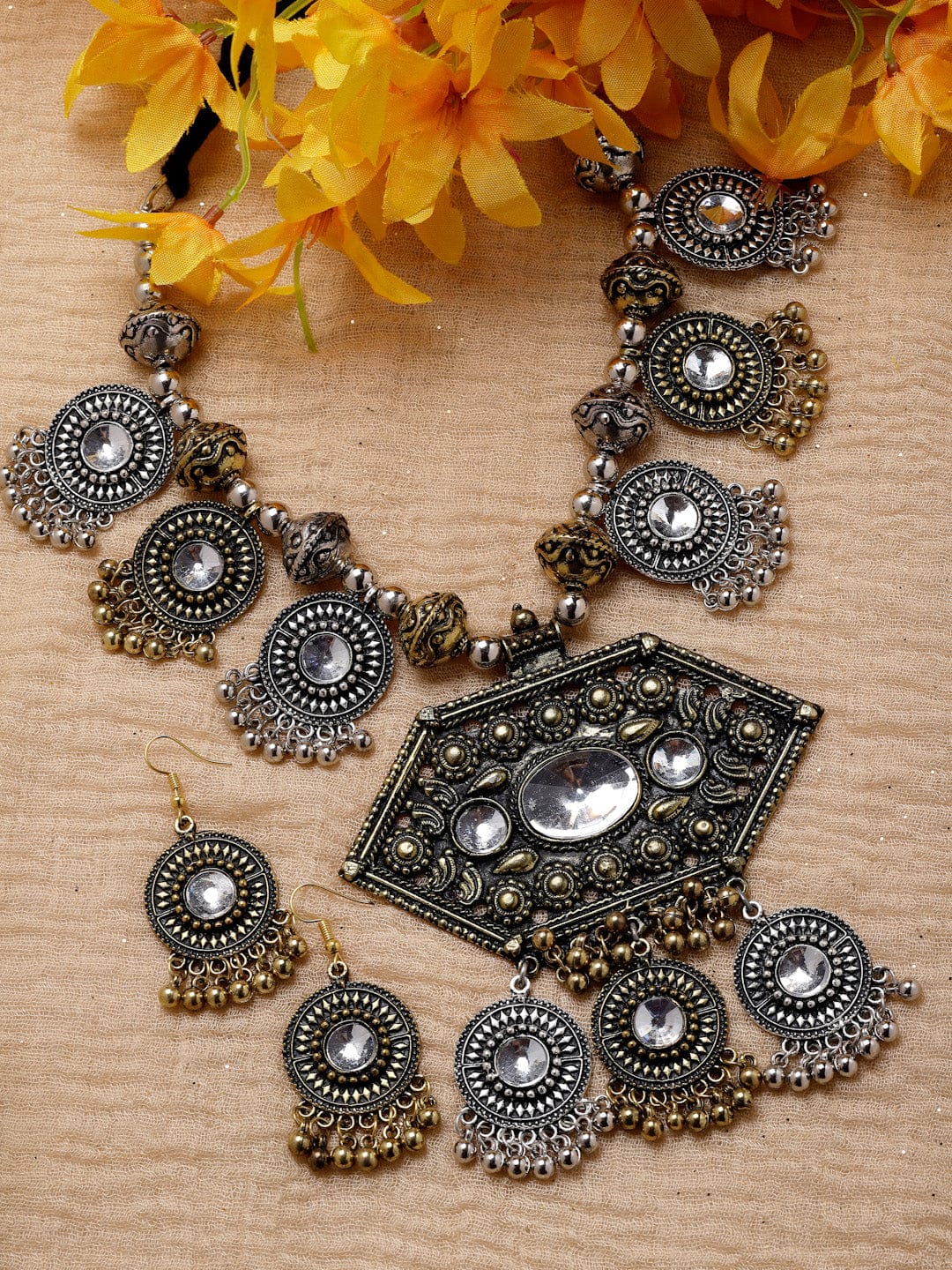 Oxidised Gold-Plated Crystral-Studded & Beaded Jewellery Set
