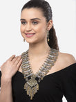 This gorgeous handcrafted jewellery set is crafted from a beautiful combination of oxidised gold-plating, white and silver-toned crystals, stones, and beads. Perfect for adding an exquisite tribal vibe to your wardrobe, it's sure to make a statement.