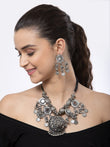 Oxidised Silver-Plated Metallic-Toned Mirror-Studded Handcrafted Afghan Jewellery Set