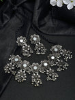 Oxidised Silver-Plated Mirror Studded Floral Tasselled Jewellery Set