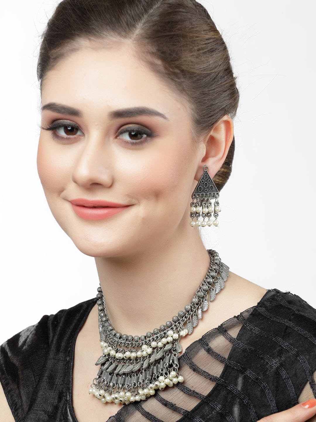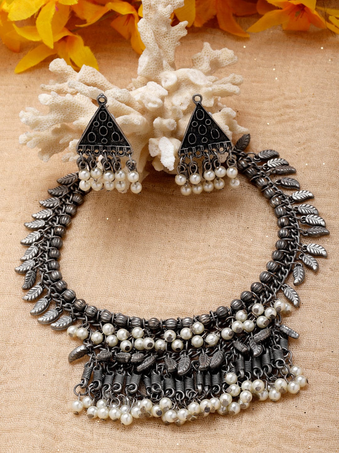 Oxidised Silver-Plated Pearl-Beaded Jewellery Set