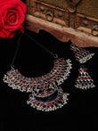 Oxidised Silver-Plated Red Stone-Studded Meenakari Jewellery Set