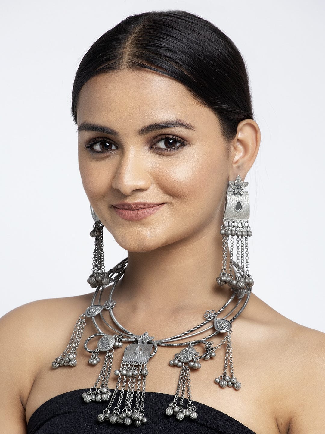 Oxidized Silver-Plated Antique Tribal Design Filigree Work Handcrafted Jewellery Set