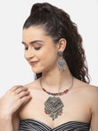 Oxidized Silver-Plated Multi-Coloured Crystal-Studded Handcrafted Jewellery Set