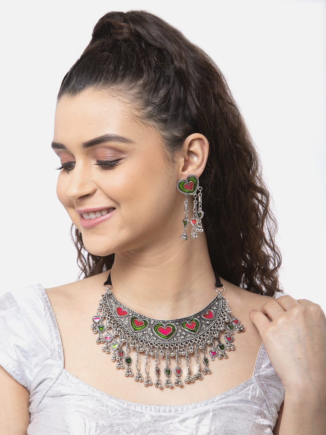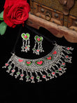 Oxidized Silver-Plated Stone-Studded & Ghungaroo Beaded Jewellery Set