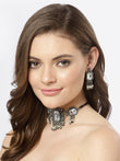 Oxidized Silver-Plated White Crystal-Studded & Pearl Beaded Jewellery Set