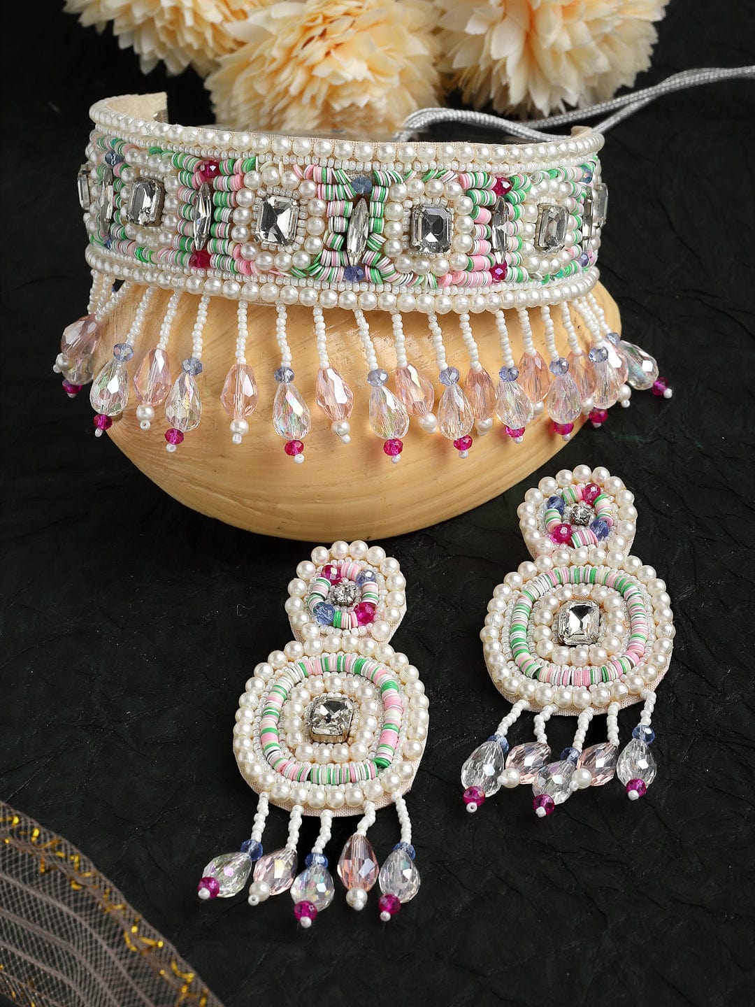 Pearls Beads & Stones Studded Handcrafted Contemporary Design Tasselled Jewellery Set