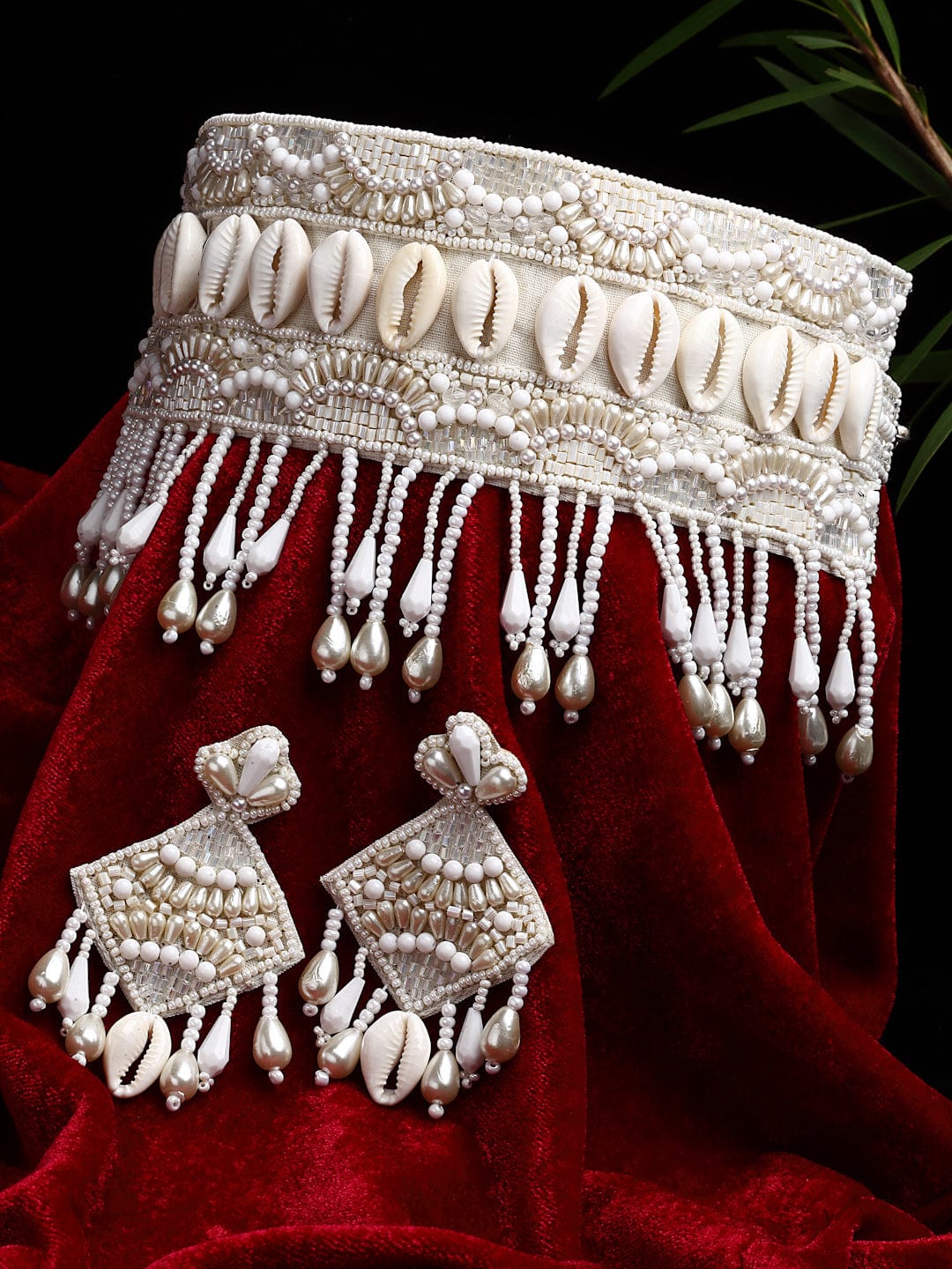 Pearls & Cowri Studded Handcrafted Jewelry Set