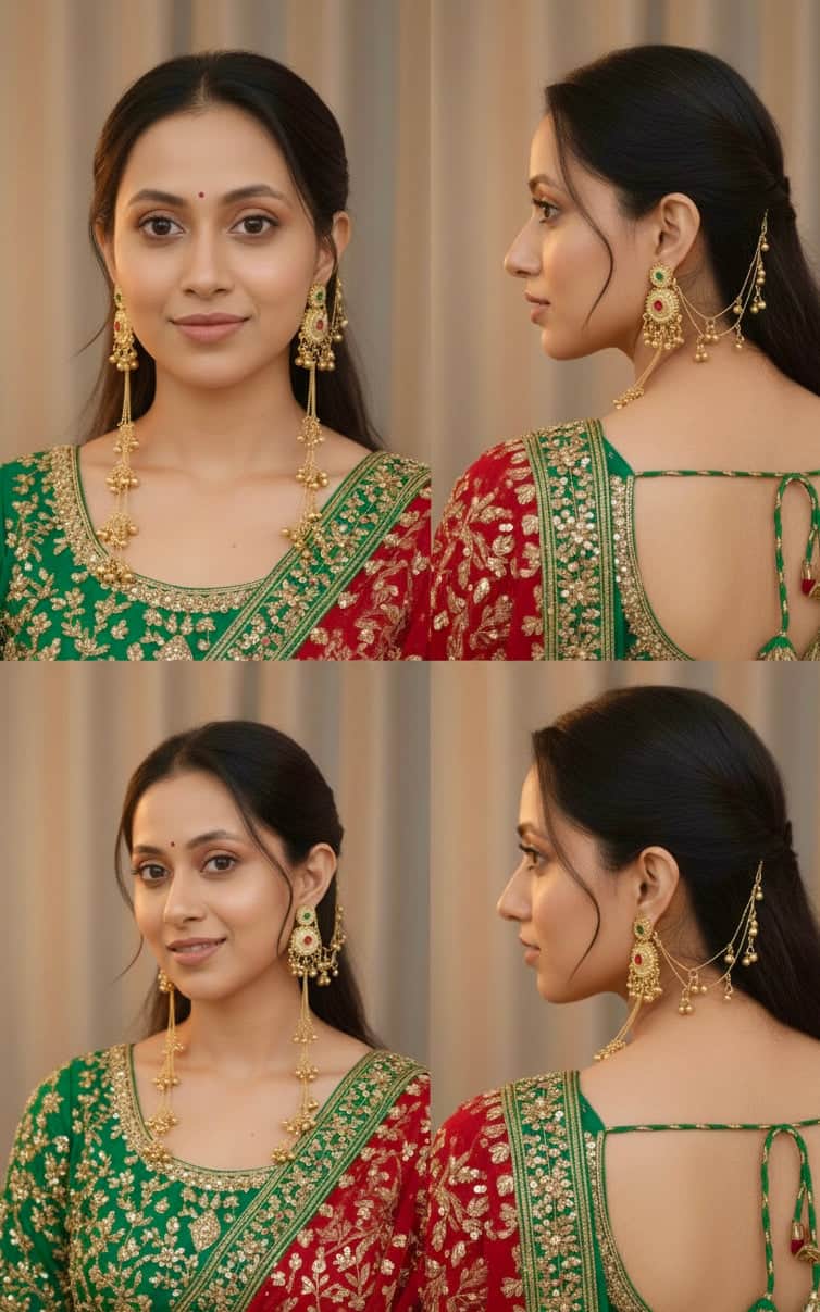 Rani & Green Kashmiri Gold Plated Brass Earrings With Kanchain
