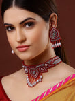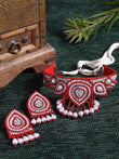 Red & White Pearl Beaded Handcrafted Jewellery Set
