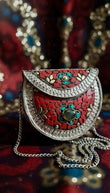 A stunning blend of tradition and style, this clutch is designed with vibrant mosaic work, floral embellishments, and antique metallic detailing. Perfect to carry as a crossbody or statement piece for festive and special occasions.