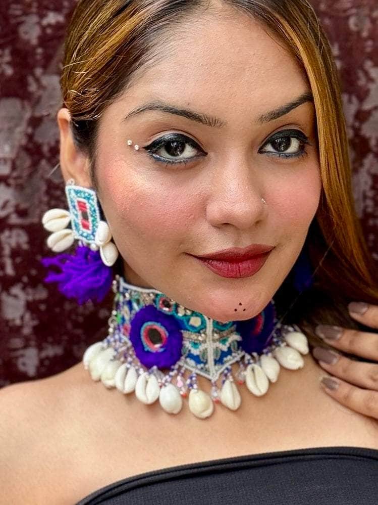 Rooh : Blue Handcrafted Boho Thread Work Tesselled Jewellery Set