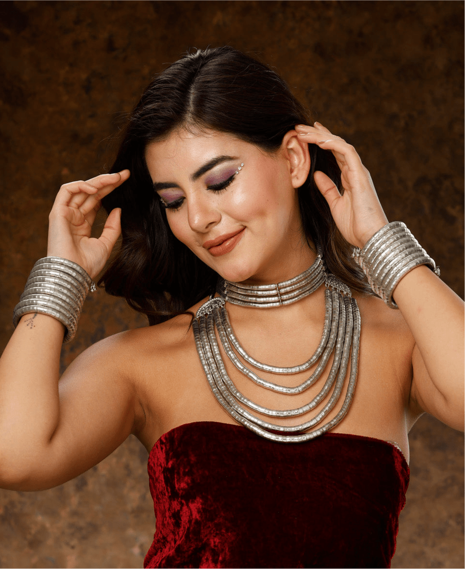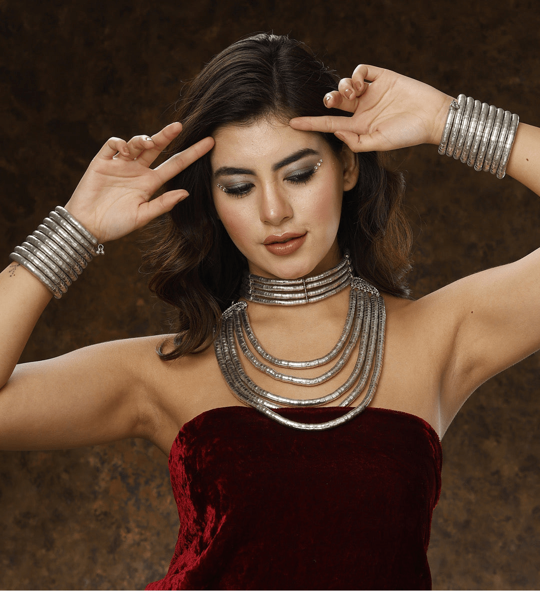 1 Long Necklace, 1 Chokar Neckalce and 2 Handcuffs