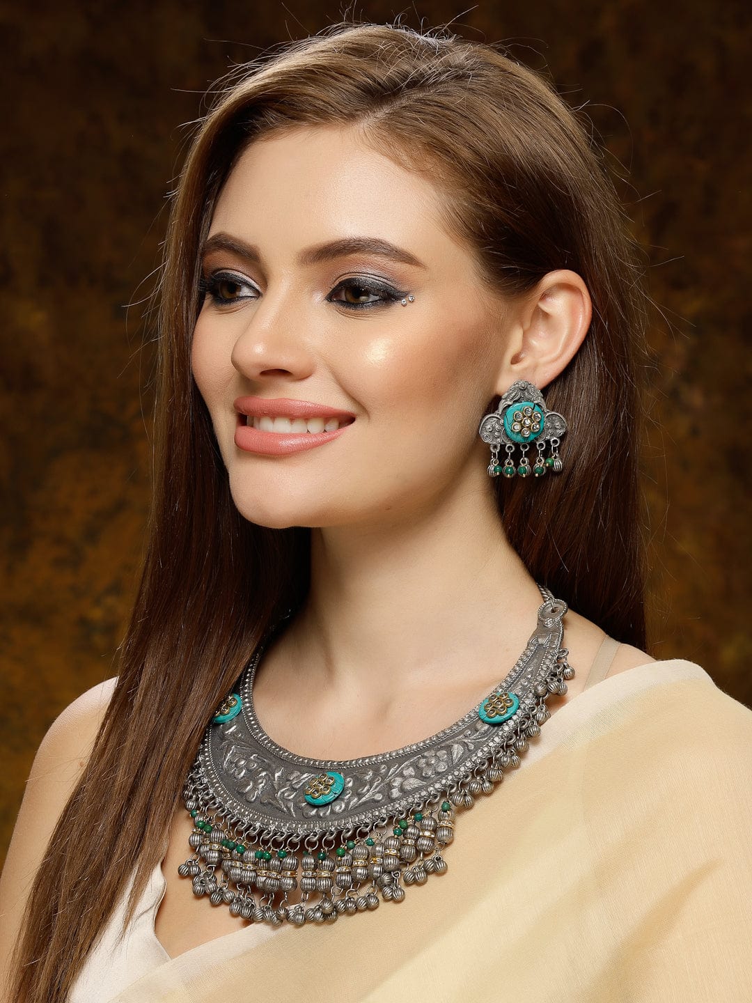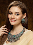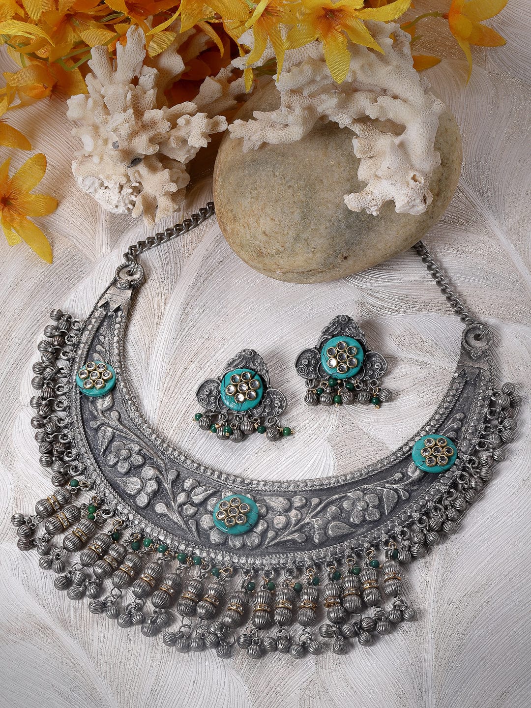 SILVER-PLATED CRYSTAL STUDDED CHOCKER NECKLACE SET