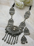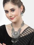 Silver-Plated Crystal-Studded Oxidised Jewellery Set