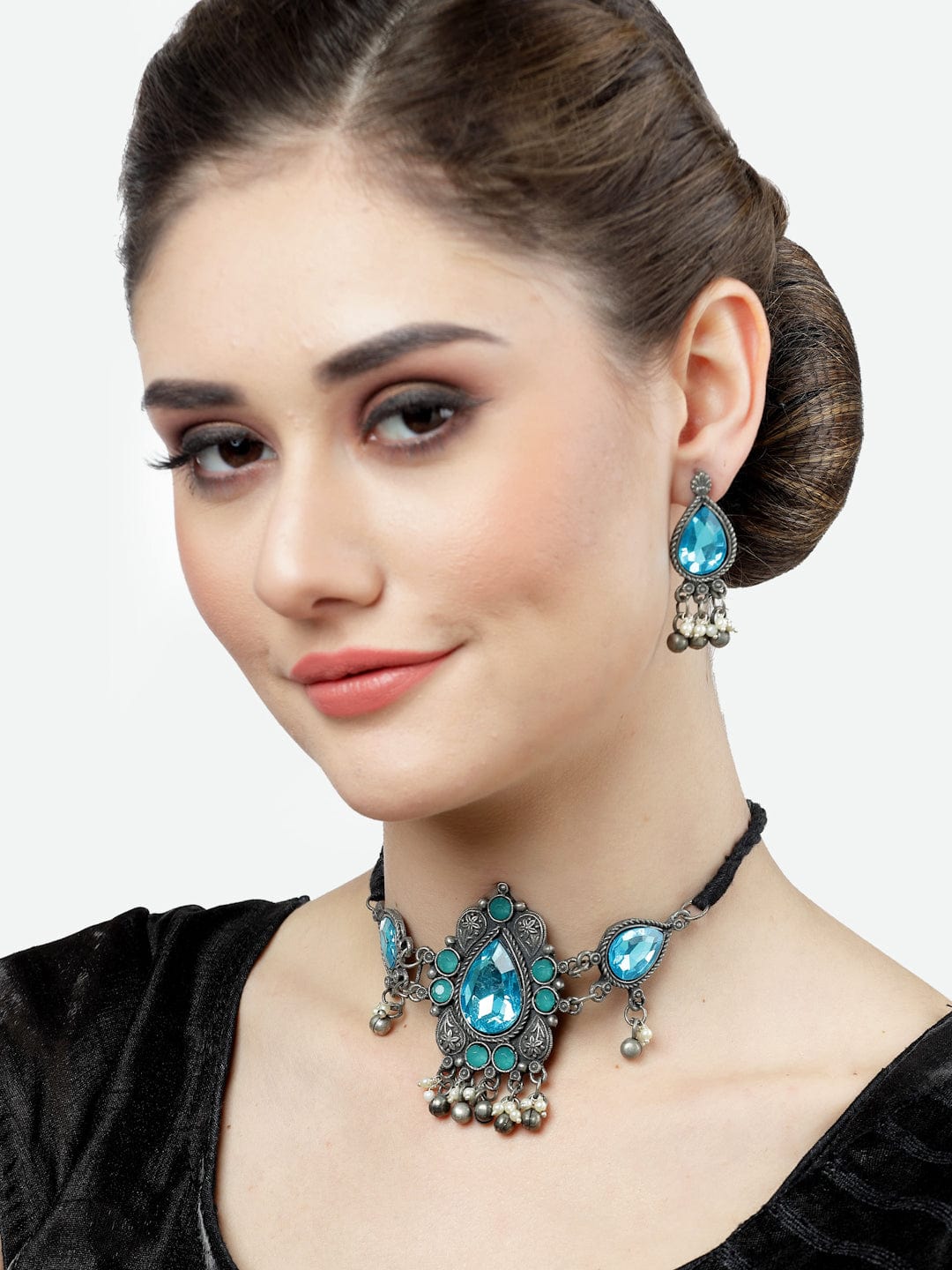 Silver-Plated Crystal-Studded & Pearl Beaded Jewellery Set