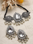 Silver-Plated Crystals & Pearls Studded Antique Tribal Design Oxidised Necklace Set