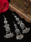 Silver Plated Ghungroo & Stones Studded Oxidised Earrings & Maang Tika Set