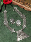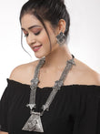 Ghungroo & Stones Studded Tribal Design Oxidised Silver Plated Handcrafted Necklace and Stud Earrings