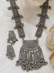 This stunning silver-plated Ghungroo studded jewellery set will add a touch of sparkle to any outfit. Crafter with quality materials, the set features intricate details and delicate ghungroos for an elegant and sophisticated look.