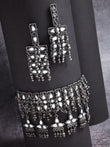 Silver -Plated Mirrors Studded & Beaded Jewellery Set