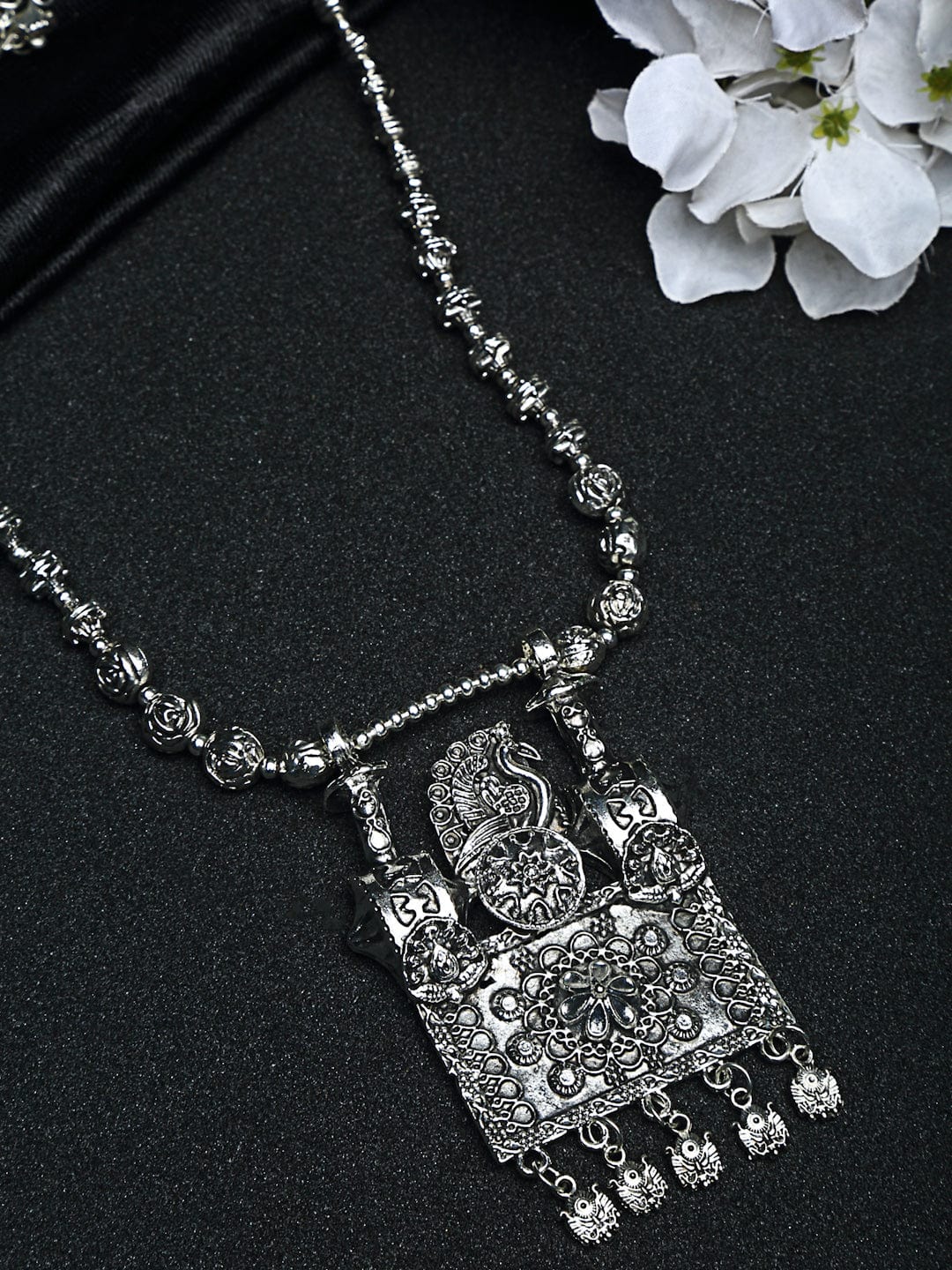 This stunning Silver-Plated Oxidised Necklace is the perfect accessory for any formal or casual look. Crafted from high-quality silver that's been oxidised for lasting beauty, this piece of jewellery will make any outfit shine. Enjoy the timeless elegance of silver with this stylish necklace.
