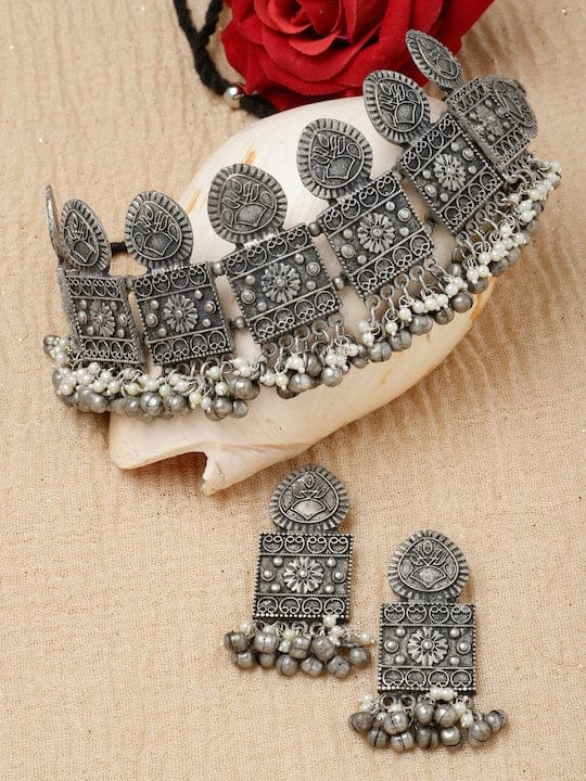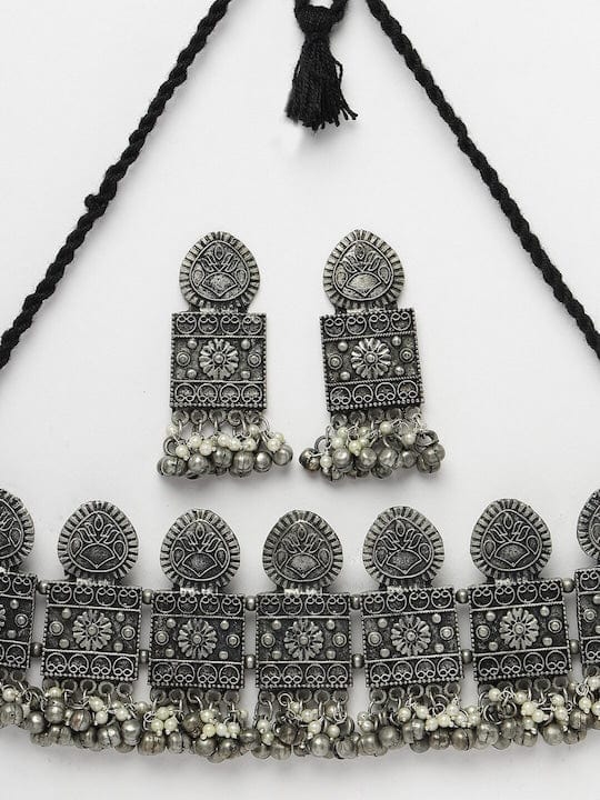 Silver-Plated Pearls & Ghungroo Studded Jewellery Set