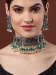Silver-Plated Pearls & Stones-Studded Jewellery Set