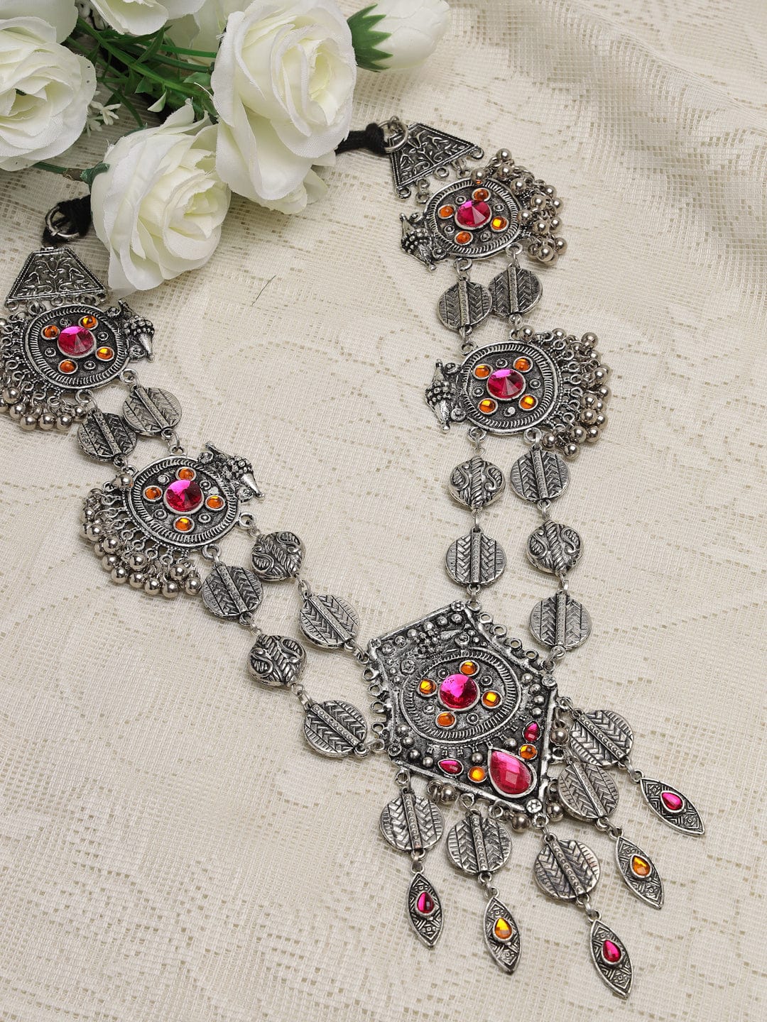 Silver-Plated & Pink Brass Afghan Necklace