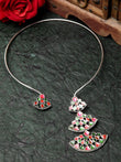 Gorgeously crafted with silver-plated and pink brass meenakari, this necklace brings a unique and intricate look to any ensemble. The high-quality materials used guarantee a long-lasting product with a beautiful finish. Capture the light in any room with this one-of-a-kind necklace.