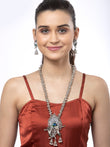 Stone Studded Temple Design Oxidised Silver Plated Handcrafted Krishna Necklace and Jhumkas