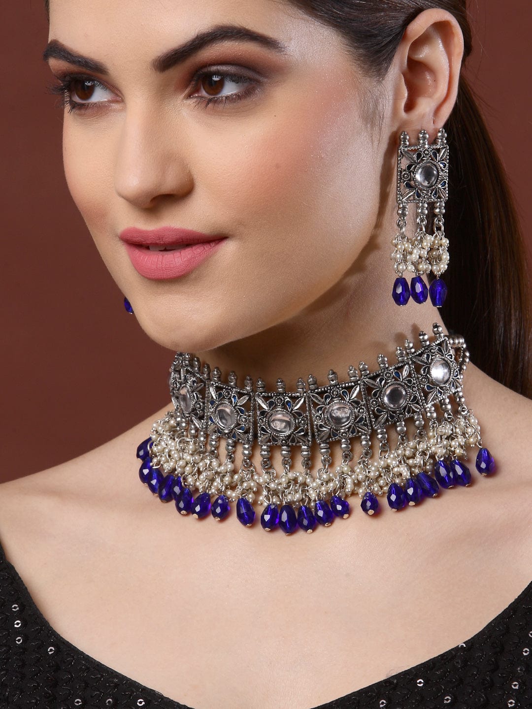 Silver-Plated Stones & Pearls-Studded Jewellery Set
