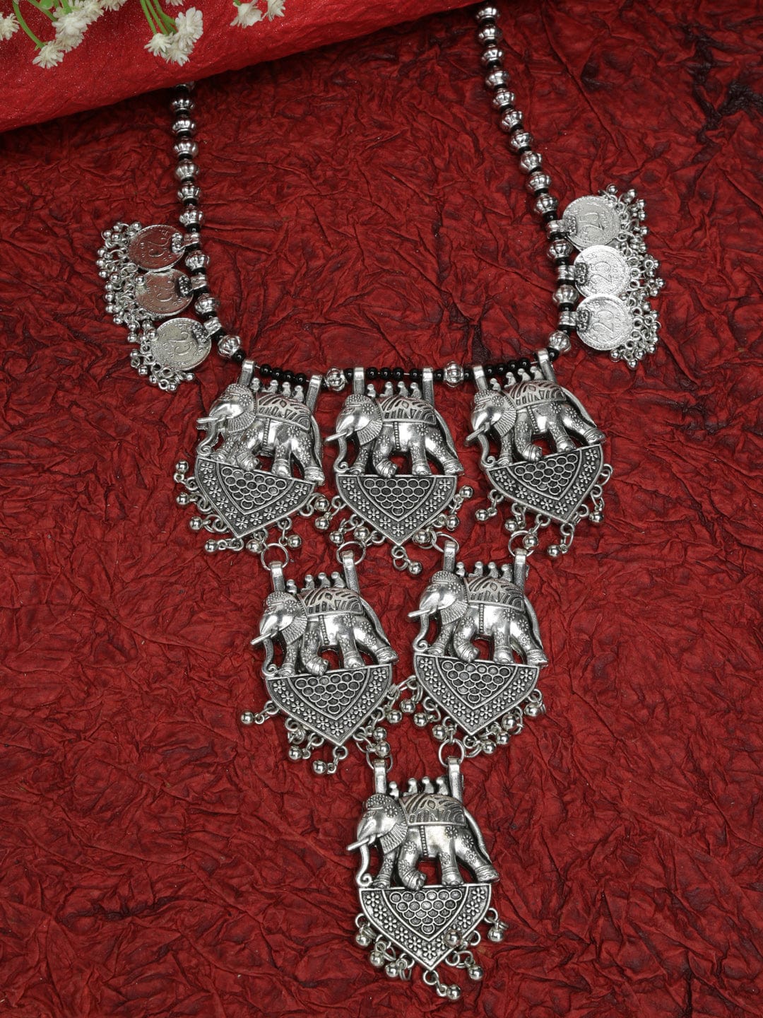 Silver-Toned & Black Brass Silver-Plated Antique Necklace