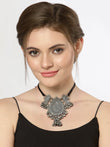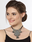 Silver-Toned & Black Brass Silver-Plated Choker Necklace