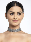 Silver-Toned & Black Brass Silver-Plated Choker Necklace