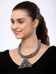 Silver-Toned & Blue Brass Silver-Plated Afghan Necklace