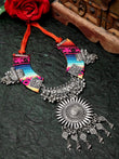 Silver-Toned & Blue Brass Silver-Plated Handcrafted Necklace