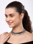 Silver-toned mirror tribal oxidised necklace