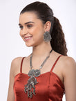 Oxidised silver-plated handcrafted temple necklace, has silver-toned beaded detail