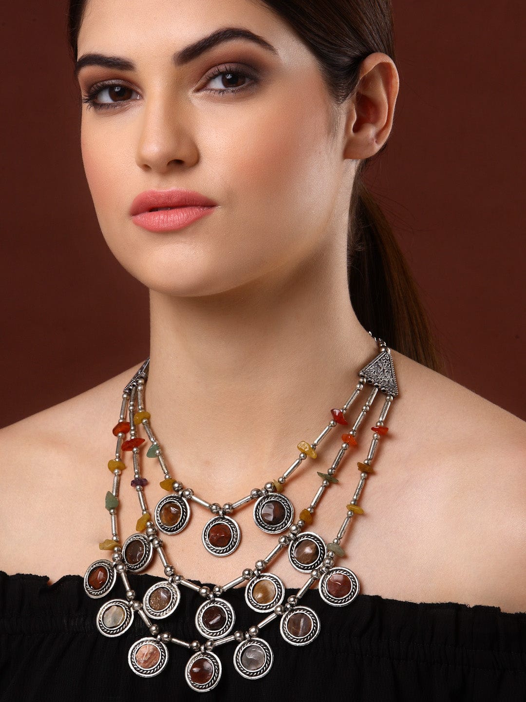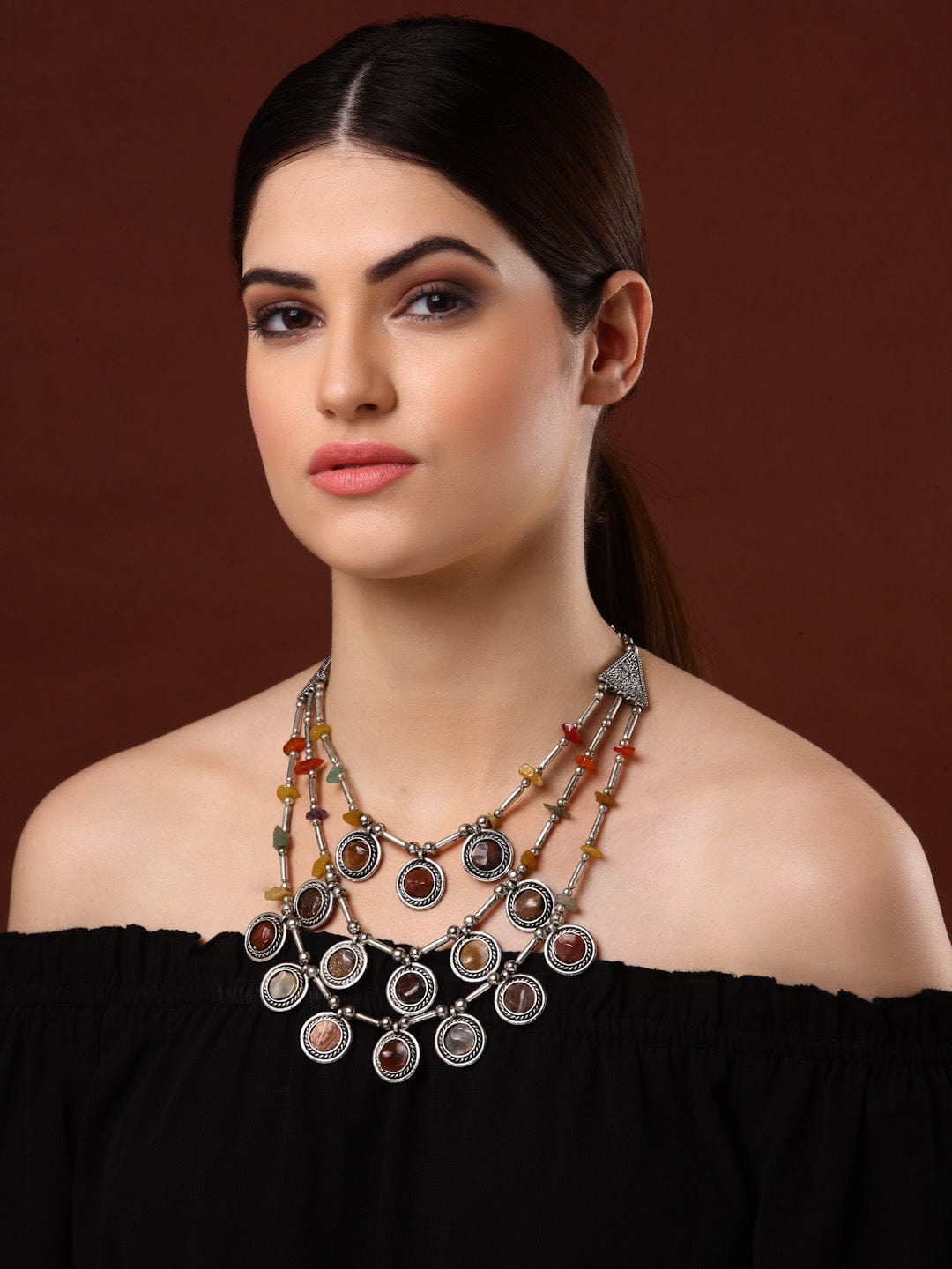 Silver-Toned & Brown Brass Silver-Plated Afghan Necklace