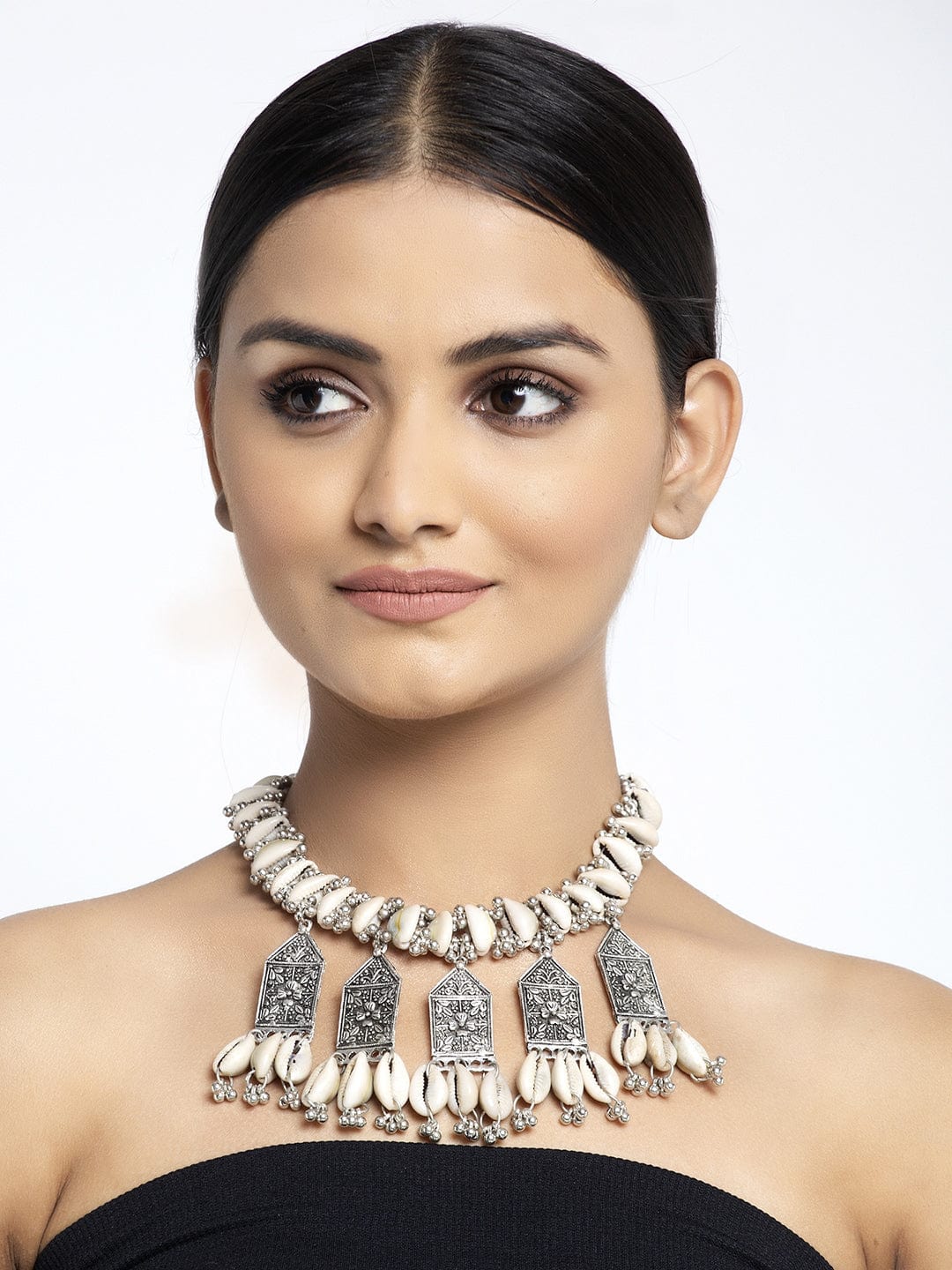 Silver-Toned & Cream-Coloured Brass Silver-Plated Choker Necklace